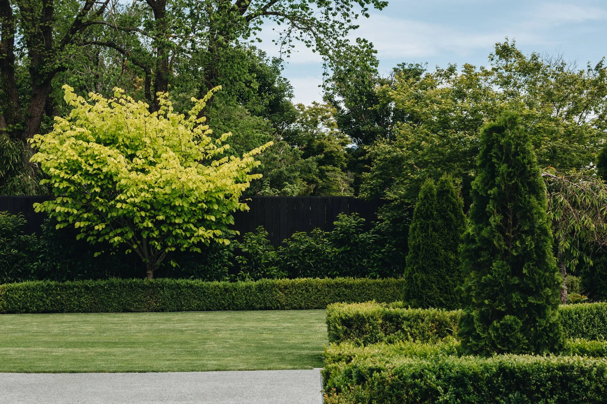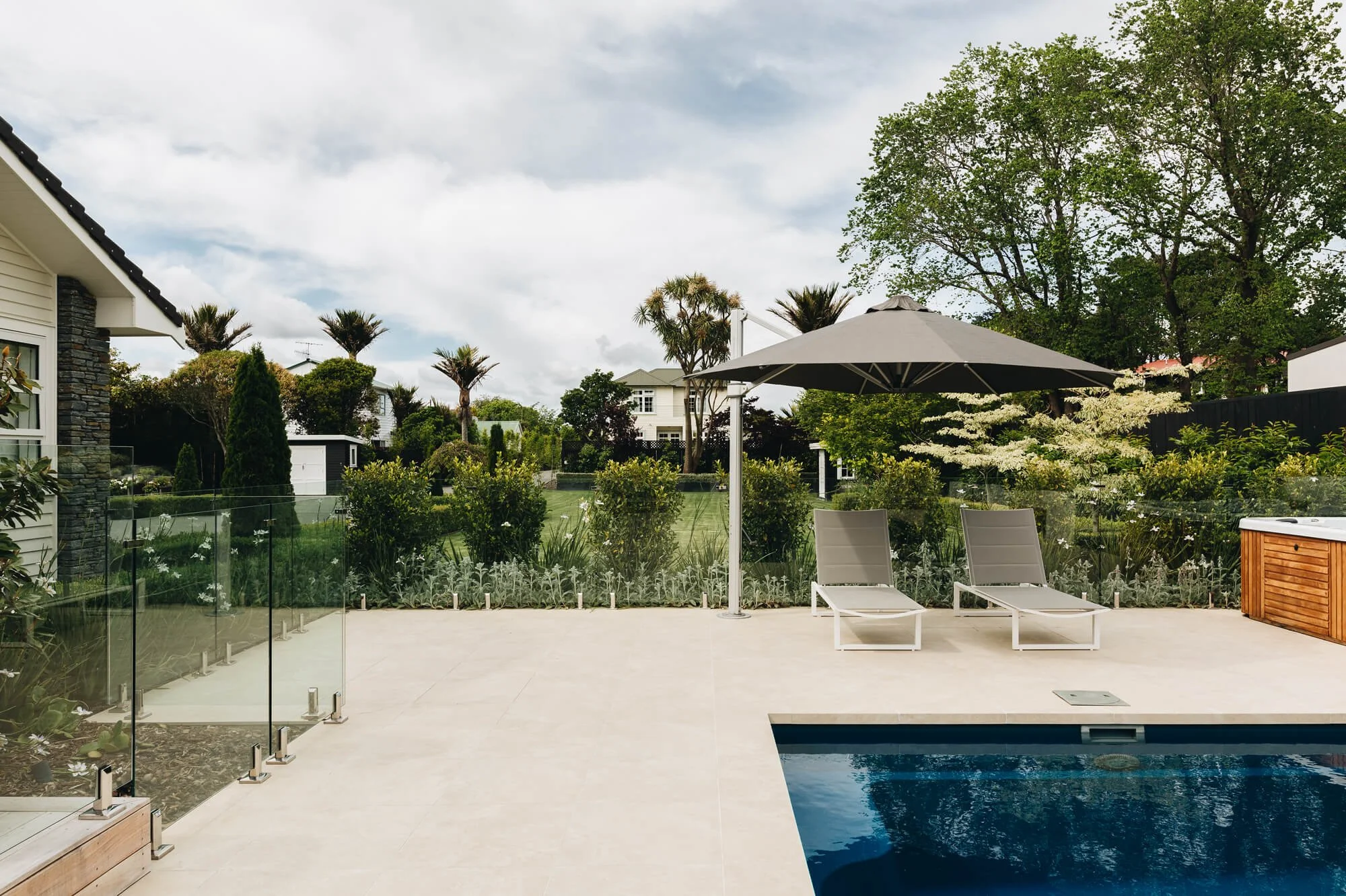An extensive upgrade to this large garden included the addition of a Swimming pool, Pool house and new outdoor living spaces. Noble Fox were engaged to undertake the planting design, retaining the existing mature trees and integrating the old with new contemporary garden spaces. Plants selected were typically structured evergreen species forming a series of hedges, softer flowering shrubs and groundcovers punctuated by specimen trees, with repetition to provide continuity between the garden areas. The overall effect giving a sense of calm within the busy suburban landscape.